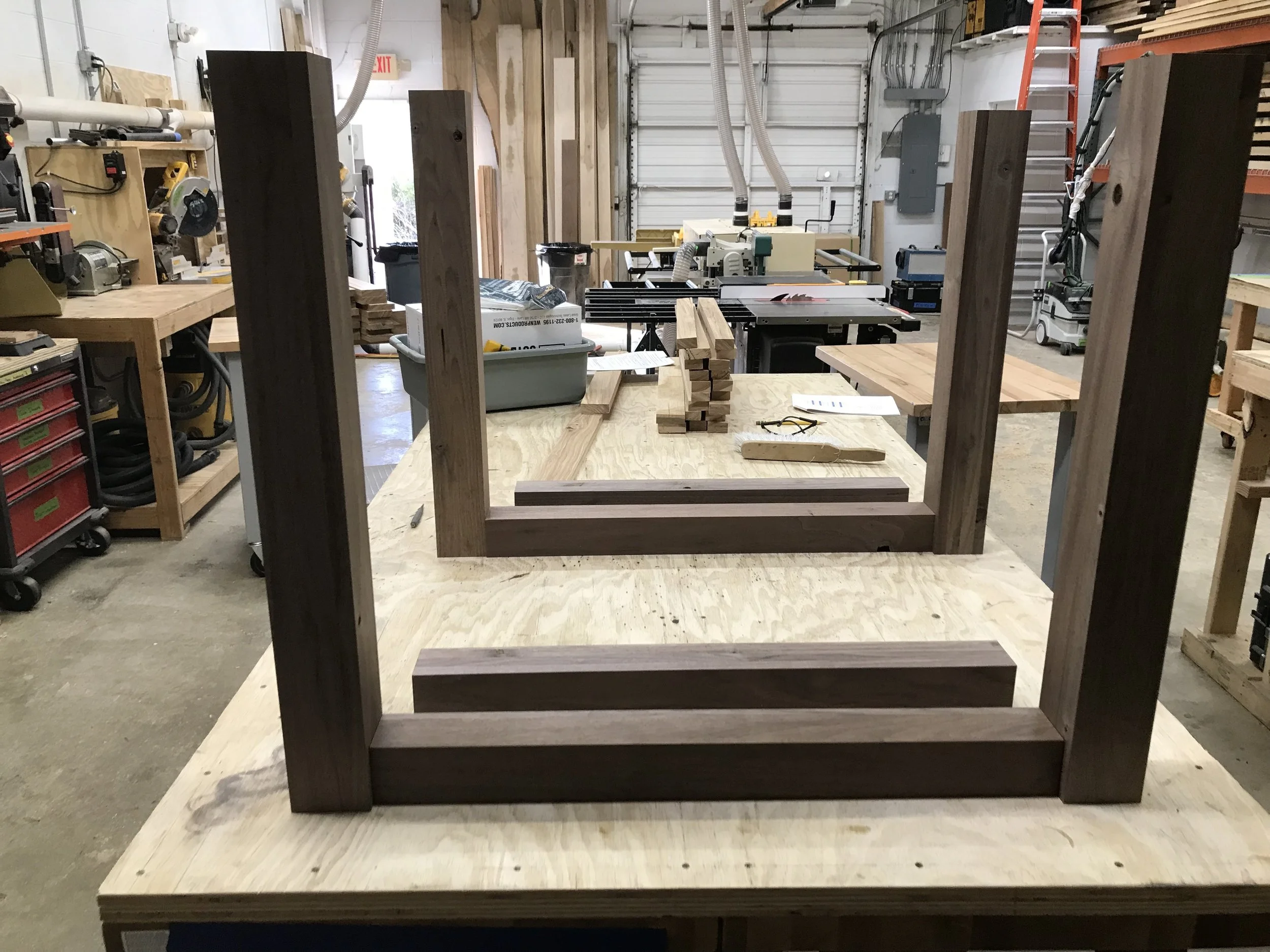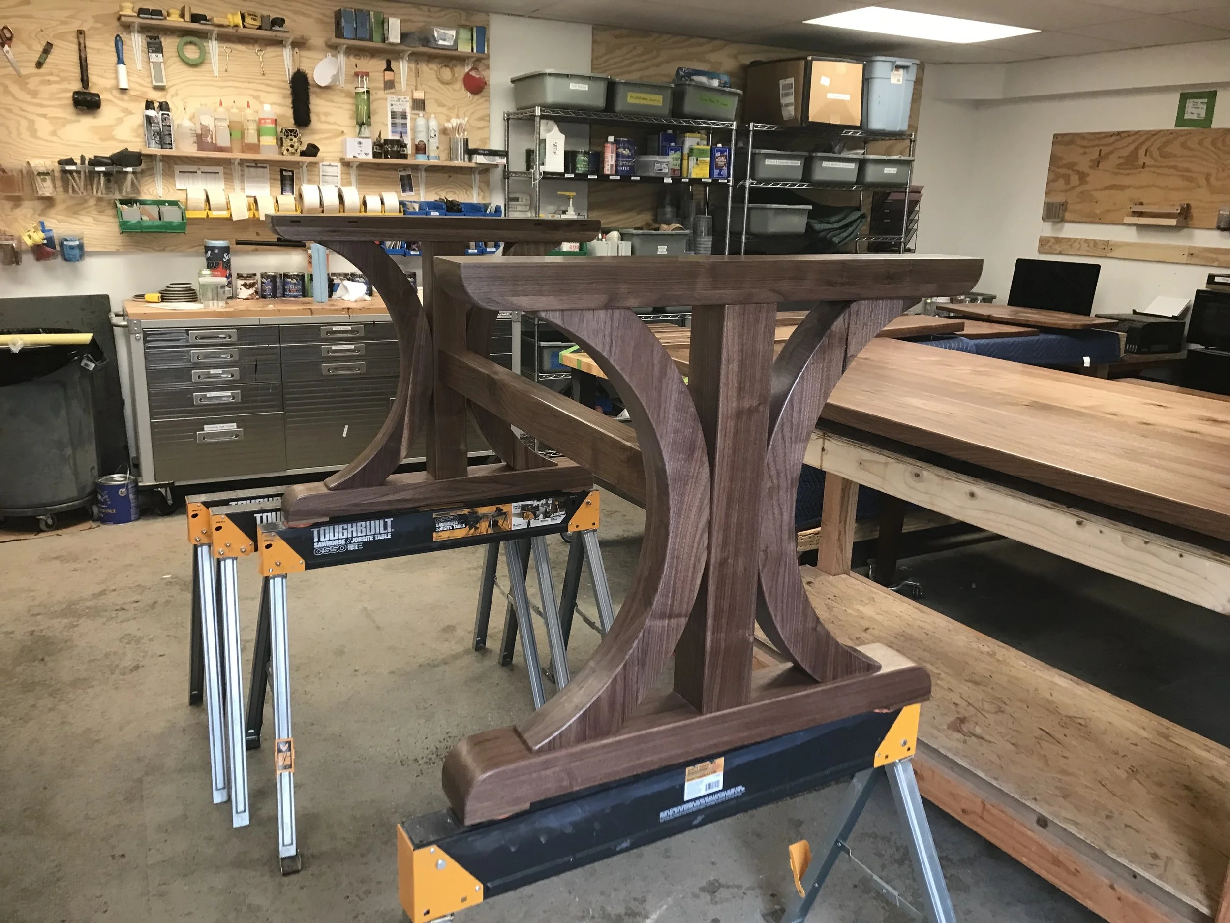 Fast forward to March of 2020 and that little thing called a pandemic. Faced with a fork in the road, Gabbi asked the ultimate question, “Why don’t you build tables?” And voila, Saint Louis Tables was born! Well, not really. The idea was born, but it took a while to put it into practice. In hindsight, the first few months of the business consisted of Phil “investing” in woodworking equipment and converting our two-car garage into a woodshop. It went slowly, but it did happen, and later that year he sold his first table (an hourglass trestle-style table, if you’re curious).
